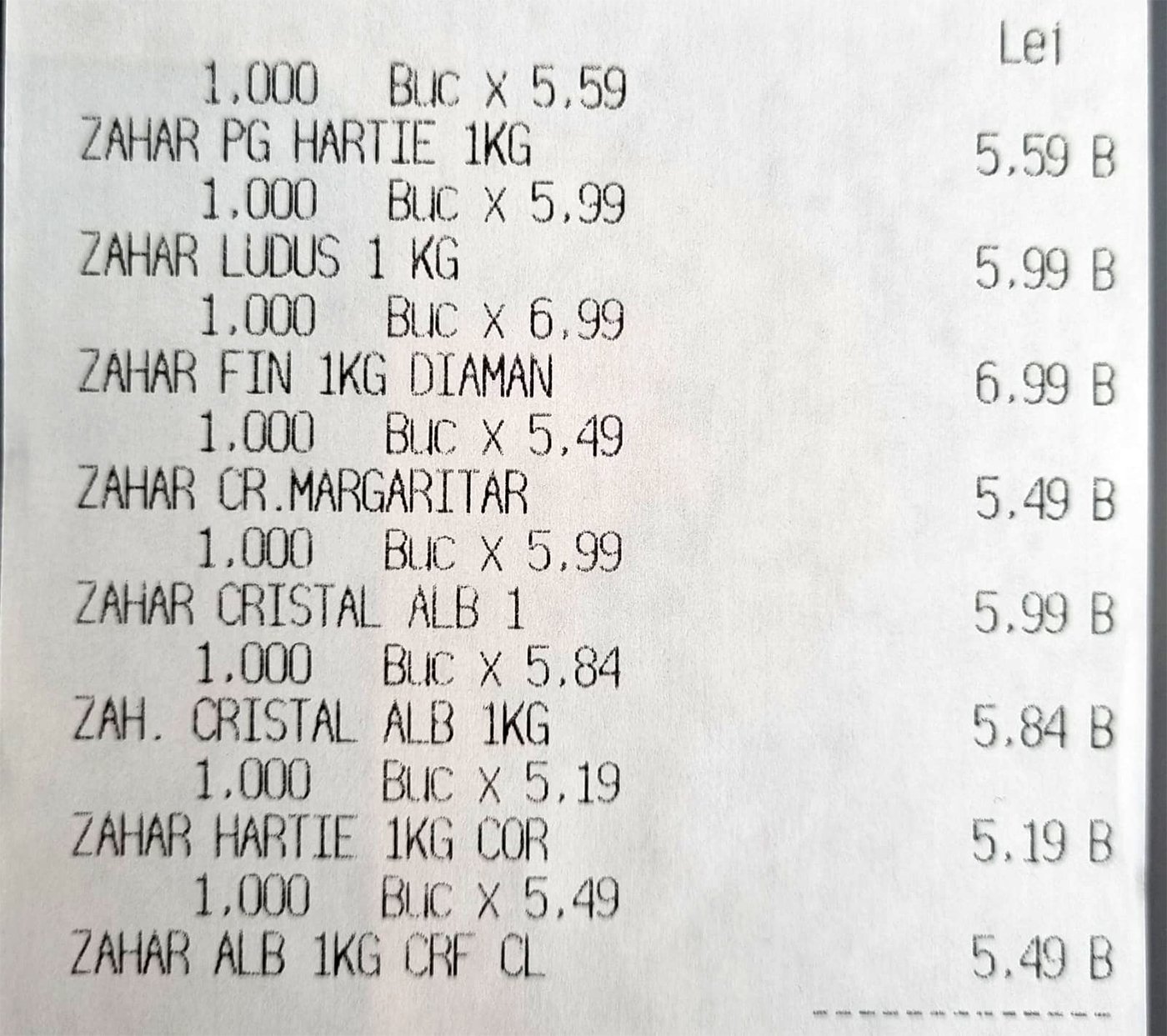 Prețul unui kilogram de zahăr