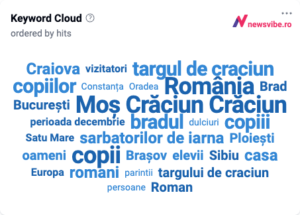 Grafic NewsVibe: Topul cuvintelor cheie incluse în postările și articolele despre Crăciun în ultima lună.