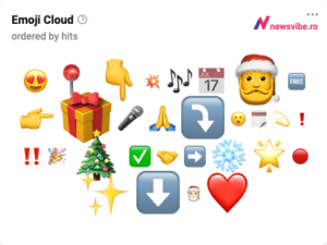 Emoji-urile utilizate cel mai frecvent fac referire directă la sărbătoarea Crăciunului – cadouri, Moș Crăciun, zăpadă și bradul de Crăciun. Emoj-ul “FREE” și simbolul microfonului sunt asociate cu mulțimea de concerte și târguri de Crăciun din orașele țării. Emoțiile predominante sunt cele de apreciere și entuziasm.