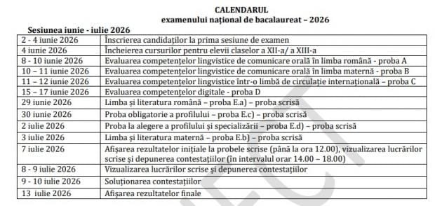 Conform propunerilor actuale, probele scrise ale Evaluării Naționale și examenului de Bacalaureat vor avea loc după finalizarea cursurilor anului școlar 2025-2026.