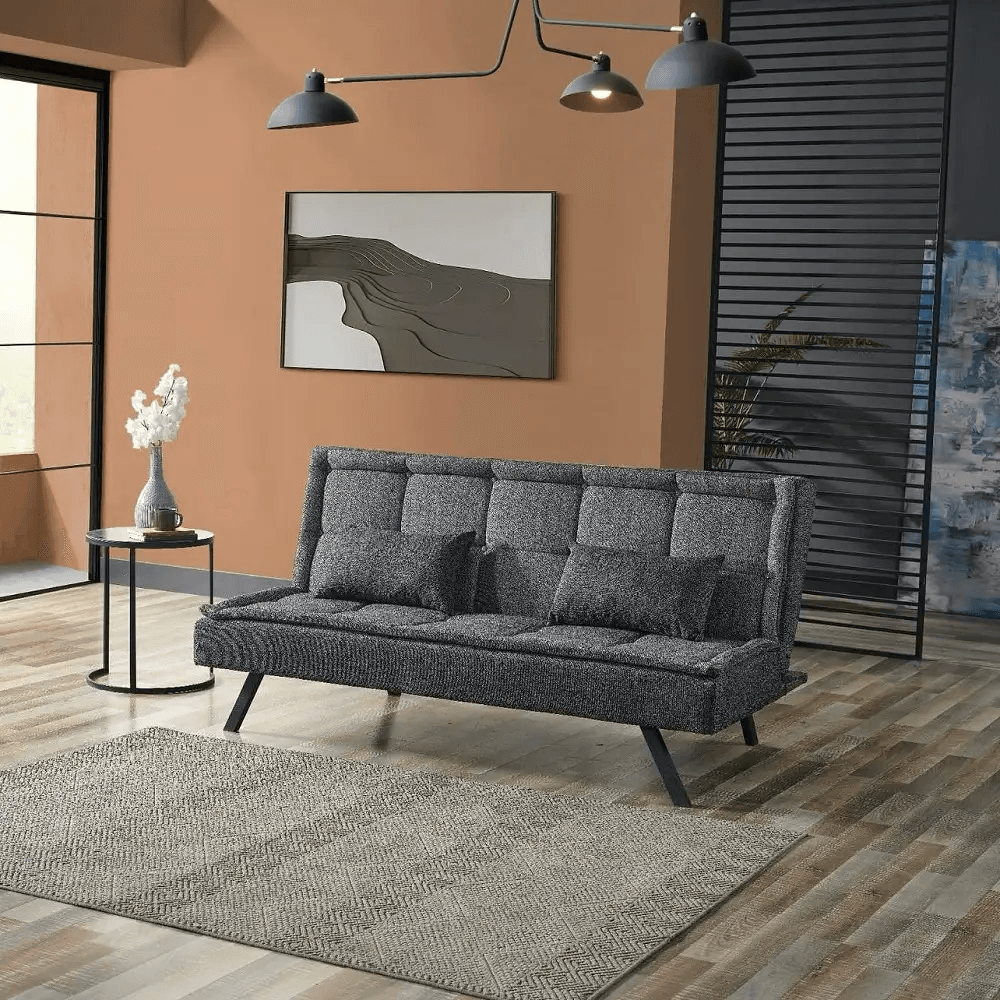 Canapea extensibilă cu mecanism tip futon – inspirat din stilul japonez, acest tip de canapea vine cu o saltea pliabilă, care se așază direct pe podea sau pe un cadru.